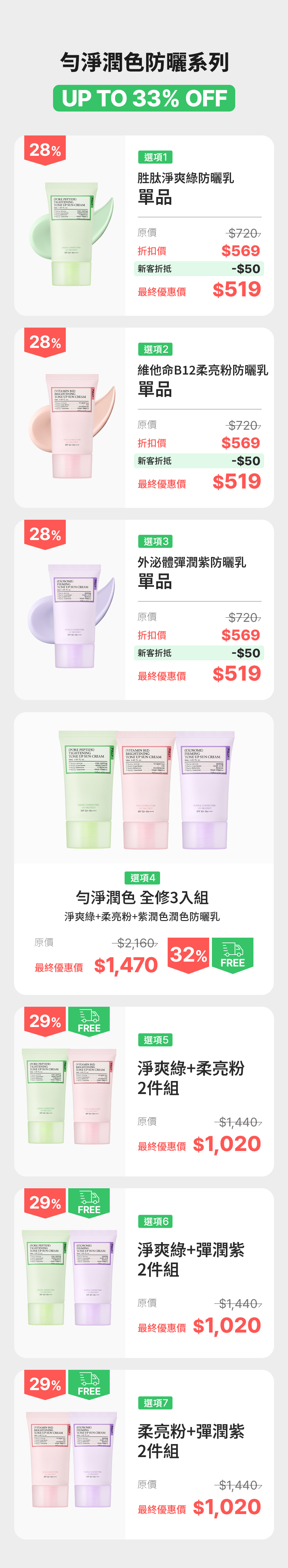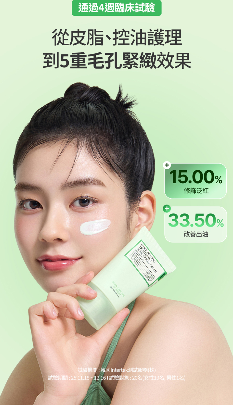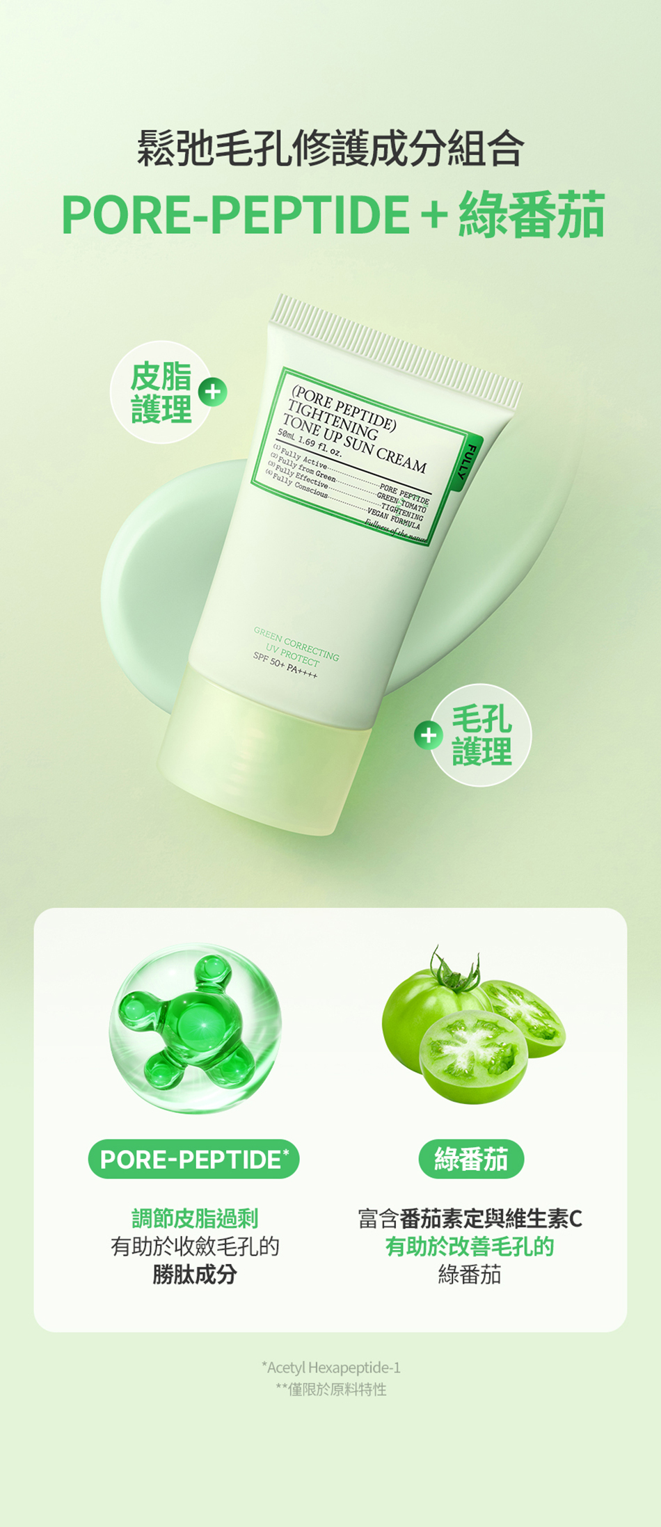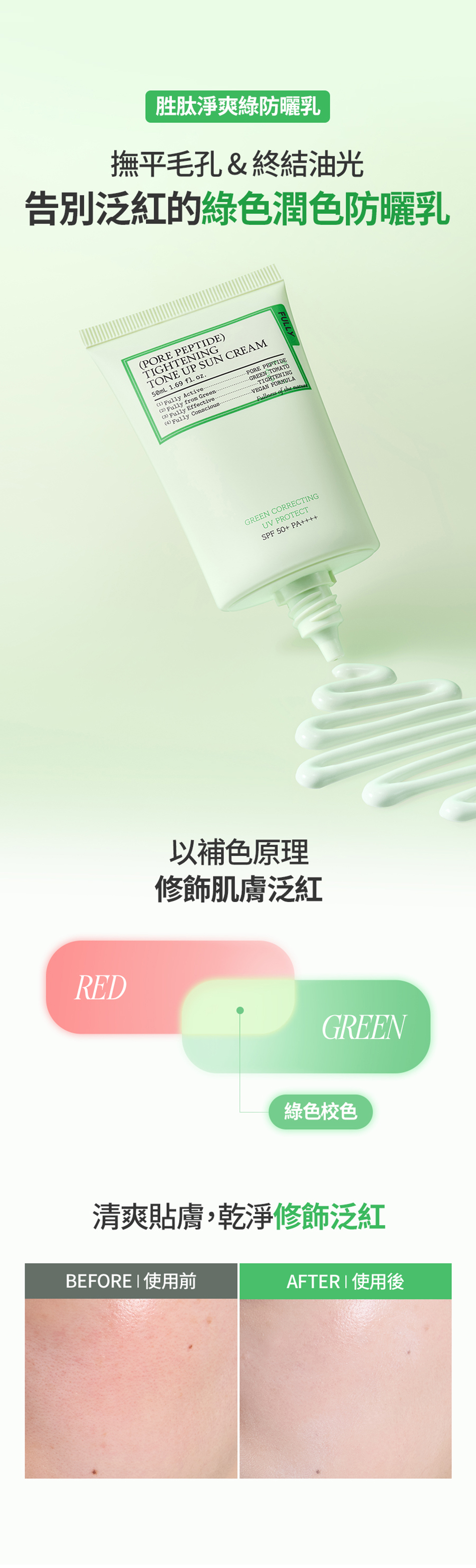 💚胜肽淨爽綠防曬乳 : 修飾泛紅&控油•修護毛孔