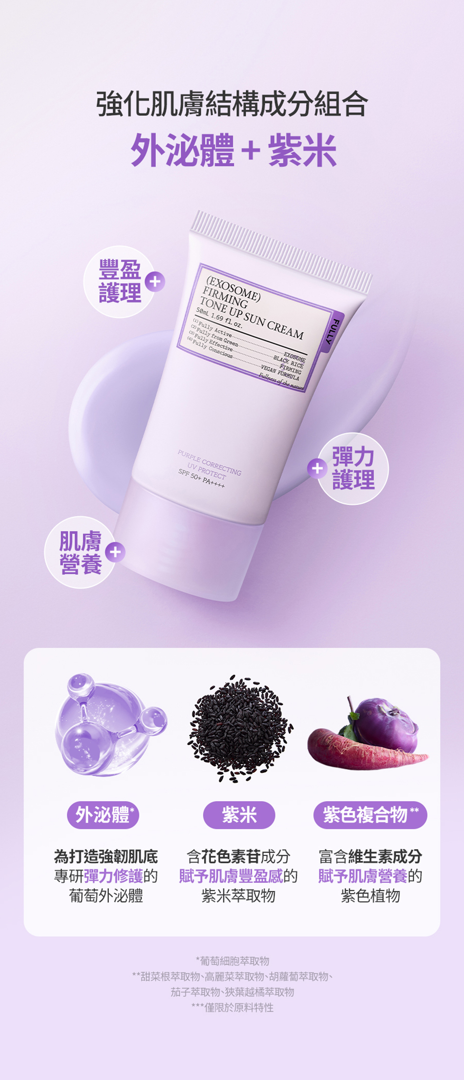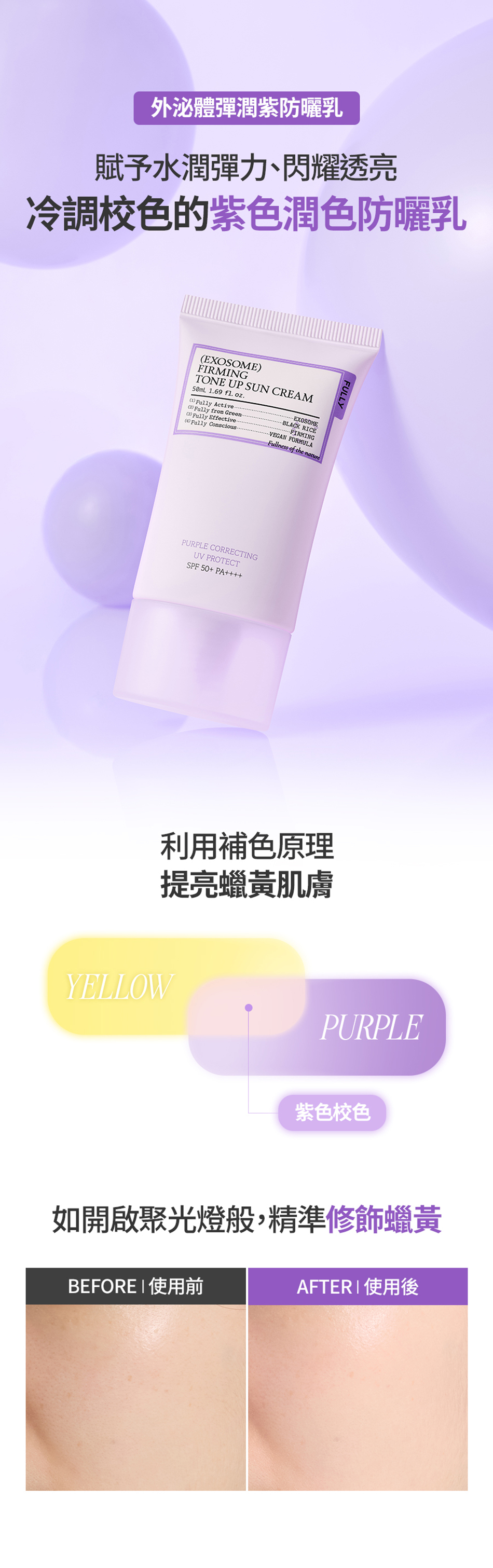 💜外泌體彈潤紫防曬乳 : 修飾蠟黃&光老化•彈力護理